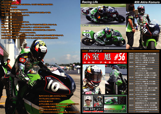 このようなパンフレット製作以外にも、レーシングチーム・ライダーの参戦企画書(製作物の性質上サンプルを公開できず申し訳ありません) などの製作も行っております。オフセット印刷では高解像度の写真が必要となりますが、高解像度写真がない場合には、 サーキットでの走行シーンやピットウォークなどの写真撮影も行っておりますので、 デザイン・写真撮影・印刷と一括したご依頼も承ることが可能です。スポンサー企業様へ 持参する企画書・パンフレット製作・リーフレット製作・写真撮影など、お気軽にご相談ください。